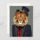 This design features portrait of a lion in a man's business suit and hat.