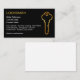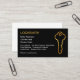 Classy business cards for a Locksmith in a gold tone on black editable design with gold house key graphic and simple layout.