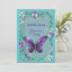 Are you looking for a classy and elegant invitation for your 15th birthday party? Look no further than this stunning design that features a turquoise green and purple with diamonds, butterflies, and bling sparkle jewels on the silver botanical frame. This invitation is perfect for celebrating your Quinceanera or Sweet 16 in style. You can customise it with your information and make it your own. Don't miss this chance to impress your guests with this fancy and sophisticated invitation that reflects your personality and taste.