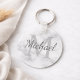 features personalized name in grey script font style and monogram in light grey serif font style as background, on white marble background.