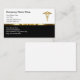 Classy medical business cards in a smart elegant design template that includes a gold coloured medical symbol that has a metallic look and gold coloured design element that gives this an upscale look. Customise the text to make it your own and hand out your business cards in style. Designed for a doctor office, medical or health insurance agent, or any business related to the healthcare industry.