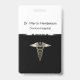 Classy medical theme office and hospital ID badges on a budget designed with a classy silver coloured caduceus symbol and design element for a medical professional in the industry. Created for your employees or staff members in a hospital Physician office, Doctor at a medical clinic, or office professional in a medical facility.