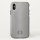 Executive men elegant modern upscale faux silver metallic sparkle iPhone case with a monogrammed metallic brushed steel dark grey circle. +++++++++++++ Easy to personalise with your monogram / name initial. ++++++++++ Please note that the brushed sparkle steel metallic effects are PRINTED.