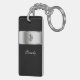 Monogram keychain with classy printed silver monogram emblem you can personalise with any name, initials, or message and printed simulated diamond jewel bling, along with black background colour you can customise if you want to. Designed as a personal gift or party favour as keychains for women or keychains for girls, in a fun two side acrylic design that lets you carry your keys in style.