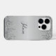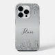 Protect your iPhone 14 Pro in style with the **Classy Monogrammed Silver Dripped Glitter Case**. Featuring an elegant design with shimmering silver drips and personalised with your monogram, this case adds a touch of luxury and sophistication to your device. The sleek, form-fitting design provides durable protection against scratches and drops, while maintaining easy access to all buttons and ports. Perfect for those who love a blend of glamour and function, this case lets you showcase your unique style while keeping your phone safe and chic.