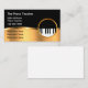 Classy Piano lessons or Piano store editable business cards in an upscale design with gold tone design elements and piano keys graphic in a simple layout. Edit the details to make this a customised design.