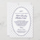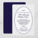 This Classy Navy Blue Check Pattern Wedding Invitation is a classy way to invite guests to your wedding. Featuring an elegant oval on the front with a combination of classic fonts with an elegant check pattern, the back has the same check pattern in reverse.
