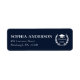 **Keywords:** Navy Blue Address Label, Customisable Return Address Label, Laurel Wreath Emblem Label, Elegant Mailing Label, Graduation Stationery, Professional Address Label, Polished Mail Decor