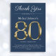 Classy Navy Blue Gold 80th Birthday Thank You Card
