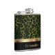 Classy Olive Green Leopard Animal Print Hip Flask