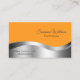 Classy Orange with Wavy Silver Decor and Photo Business Card