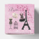 Chic, romantic, pink Paris favour box with the Eiffel Tower, French magazines, beautiful pink and black corset, dressmaker's mannequin, antique bird cage and hearts on a shabby chic pink vintage look background. An elegant, fun, trendy, glamourous gift for women and girls. Some elements purchased from Suz Brill at commercial-use-scraps.com. If you need any assistance customising your product please contact me through my store and I will be happy to help.
