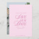 This classy elegant save the date card in pastel pink features a minimalist design with "save our date" styled in a mixture of classic text and elegant calligraphy script that lends a sophisticated, classy style with old money vibes. The design also features a place to add your photo that covers the entire back of the card.