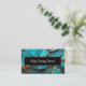 Classy business cards designed in a turquoise and gold tone background graphic that features your name or business name along with your contact and list of services organised on the flip side. Created for a personal assistant, executive assistant, or personal concierge in a custom editable template.