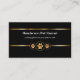 Classy design pet kennel business card template in elegant gold and black with gold coloured pet paw prints and your company name featured on the front. Created for a dog kennel, pet care taker, or doggie day care services.