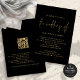 Classy QR Code Gold Black Wedding. Available digitally and printed. Add your QR code to your wedding website on the back so your guests can RSVP and see all the details online without the need for separate enclosures. Your QR code will automatically be generated when you change the sample url to your own. An informal set typography in gold for the heading the Wedding Of complementing the rest of the text which you can easily personalise.