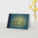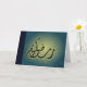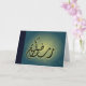 Send a Ramadan greeting with this blue brightening Ramadan Kareem card! This card shows a beautiful Arabic calligraphy of Ramadhan Kareem and a beautiful floral ornate print. A beautiful Islamic greeting card! This card is available in other color designs, too!