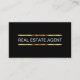 Classy real estate agent business cards designed in an upscale black and gold design elements that feature your name or professional title on the front. Best business profile card for a Realtor, Broker, or sales agent in the home selling market.