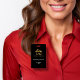 Classy real estate employee or field rep name badges with clip included in an elegant design that includes a gold coloured house symbol and geometric divider line that has a metallic appearance with name and company name templates you can customise online. Designed for a Realtor, Broker, agent or agency. Perfect to wear during an open house for a professional appearance.