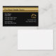 Classy real estate business cards with golf coloured upscale house symbol and modern design name banner. Best business cards for themes related to real estate, realtors, home services, or handyman or a home appraiser.