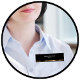 This badge looks professional and it's in keeping with my branding. The magnetic attachment is strong and stays in place all day. The quality of the materials and the colors were exactly as pictured. I couldn't be happier! The printing is clear and easy to read