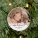 Classy Red Baby's 1st Christmas 2 Photo Name Ceramic Ornament
