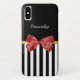 Classy Red Bow Black and White Stripes With Name Case-Mate iPhone Case