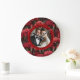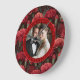 Classy Red Carnation Aesthetic Botanical Wedding Large Clock