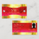 Classy Red Marble Shiny Gold Border Monogram Photo Business Card