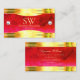 Classy Red Marble Shiny Gold Borders with Monogram Business Card