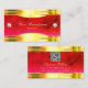 Classy Red Marble Shiny Gold Borders with QR Code Business Card