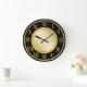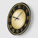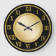 Roman numeral kitchen wall clocks in a classy design that includes a gold and black background color. Unique beautiful household design for your kitchen, family room, or any room in your house you want to add some character and style.