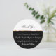 Here is a classy and unique business thank you card with envelopes included on round format card stock in gold, black, and white. Includes digitally printed faux gold divider design element for a touch of class. Thank your customers, office staff or managers.