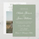 This wedding invitation is perfect for your wedding if you are looking for an elegant unique and easy editable invitation .An elegant unique luxurious sage green and white image wedding template invitation. as you see it features green background. And classy chic font in white old money bright bride's and groom's first names and script info. With bride and groom s names and customizable photo on the back. It is Affordable and it is also digital electronic e-invitation if you want to send it by text or email. All the info are customizable by clicking on the personalize button. So Grab it and make it yours so you make you invites engaged and excited .