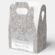Personalised elegant custom silver favour boxes for weddings or any event with a beautiful printed silver sequins pattern, a cute shiny silver printed bow and ribbon and pretty printed diamond bling jewel. Text, font and colour of font can all be customised. If you need assistance customising your product please contact me through my store. I will be happy to help. I have matching products in my store.
