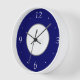 This kitchen clock is simple in design but punches its weight ! A minimalist royal blue design featuring a white circle centre with small border of grey. Capped off by fun white numerals. If you are looking for a standout clock this is it! Customisation is offered .Available in square and round shapes .