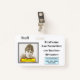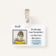 This classy and elegant staff badge design features editable details such as a portrait photo, a company/business logo, a staff member name, and a role/title. A badge like this could perhaps be used to indicate that a person is a known and authorised staff member at a business or workplace. [~Z0000450]