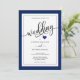 Simple and modern yet elegant. Classic personalised navy blue and white wedding invitations. Classy script calligraphy WEDDING with small heart in the middle. Text font, size and colour can be changed. Easy to edit cards. Back of card navy blue stripes (change to match your wedding colour scheme - click 'customise further'). Initials of bride and groom, website address and PHOTO. Contact designer for other variations or colours.