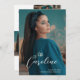 A classy modern graduation announcement card with a stylish script, photo overlay, and photo collage. Five (5) Photos and details are easy to personalise and customise.
