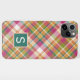 Contemporary pink red, green, orange, and white tartan plaid pattern. With room to customise or personalise with a monogram or initial of your choice. Beautiful, modern, and cool cover for the trend-savvy and art-loving hip trendsetter, artsy motif lover who wants to protect their phone from dust and dirt, wear and tear. This design is available in Apple iPhone 6, 7 and 8 Plus, 10 or X, XR, XS, 11, 12, 13 Mini, 14, 15 Plus, and Pro Max cellphone cases. Show off your style, look fashionable trendy, and feel stylish with a unique design on a mobile device accessory of your choice.