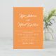 For the bright themed weddings inspired by sunset and citrus. Modern minimal and elegant sunset orange with mid-century calligraphy personalised wedding invitation. This product is easily editable. If you need help with the customisation of this product or you need more matching products for this collection kindly message me via Zazzle.