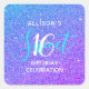 Classy Sweet 16 Teal Purple Glitter Ombre Name Square Sticker