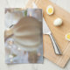 A kitchen towel with a beautiful classy photograph. A Thanksgiving holiday table featuring fine china and glassware. Fancy golden bokeh lights in the background. A single off white gourd sits on top a plate.