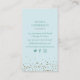 Wow your clients with this classy chic feminine business card, which is perfect for event and party planners. This design features a dusty pale blue background with a turquoise balloon decorated with glitter, turquoise blue flowers and foliage. Faux gold & silver glitter confetti frames the base of the card on both the front and back. The reverse of the card has your contact details and social media icons (which are removable by clicking "customise further").