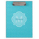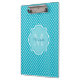 Classy Turquoise Blue Quatrefoil Monogram and Name Clipboard