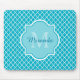 Classy Turquoise Blue Quatrefoil Monogram and Name Mouse Pad