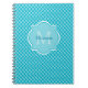 Classy Turquoise Blue Quatrefoil Monogram and Name Notebook
