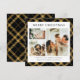 Classy Typography Black Gold Plaid Photo Christmas Holiday Card