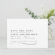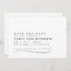 This save the date serves as a beautiful prelude to your wedding. Combining a modern classic black and white colour scheme with an elegant decorative swash and small heart on the back. This is a lovely way to make your guests feel special and included in your celebration.
