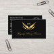 Upscale classy notary business cards in an elegant two side design template created with a gold tone wing notary graphic and notary emblem in a classic calling card layout you can customise online to make this your own visiting card.
